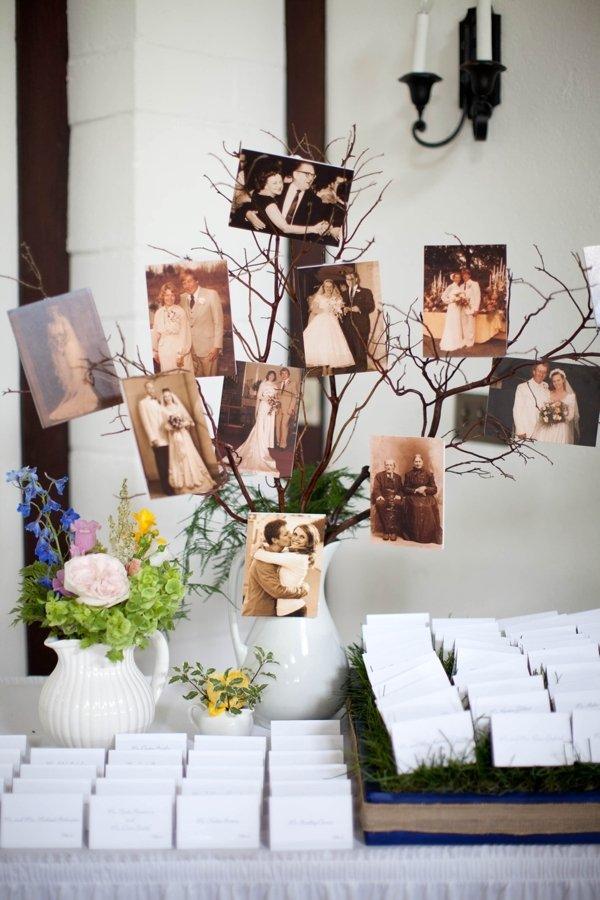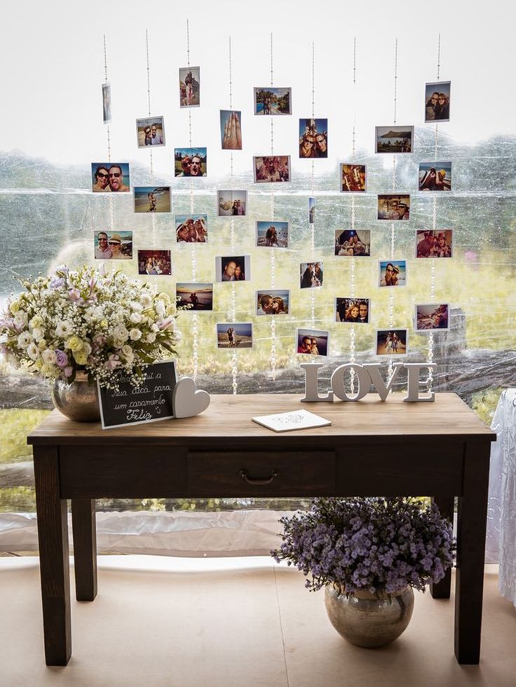 Această modalitate de a etala pozele poate fi folosită și la decorarea unei săli de evenimente, nu doar în casă. Ai nevoie de câteva sfori sau șiraguri de cristale de lungimi diferite și bandă dublu-adezivă sau un perforator pentru a prinde pozele de sfori, și apoi sforile de tavan sau lustră.