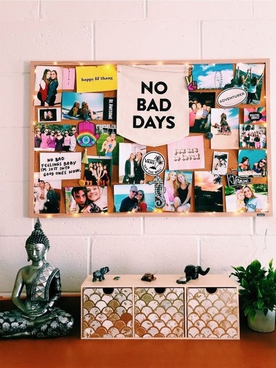 Ai nevoie doar de cateva poze cu locurile, obiectele sau persoanele preferate pentru a crea un aranjament deosebit pe un panou din plută înrămat care te va face să zâmbești de fiecare dată când îl privești