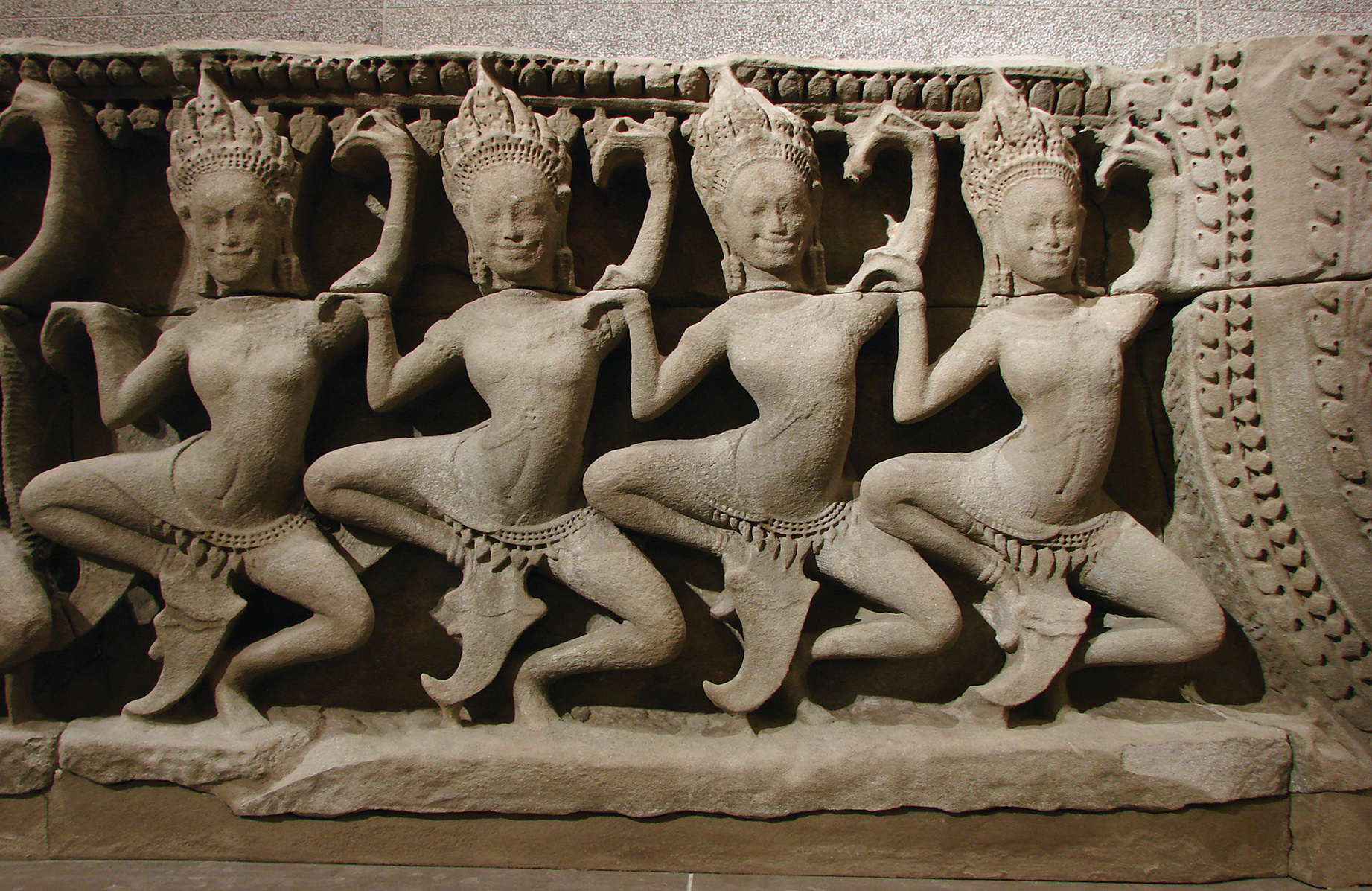 Atât Cambodgia cât și alte țări din sud-estul Asiei au fost multe secole de-a rândul societăți matriarhale, astfel încât nu este surprinzător faptul că în Parcul Arheologic Angkor sunt peste 2000 de sculpturi de apsara, spirite feminine celeste. Aceste adevărate capodopere de fețe și trupuri feminine sunt reprezentate atât prin mici sculpturi pe pereți, dar și unele de dimensiuni mari.