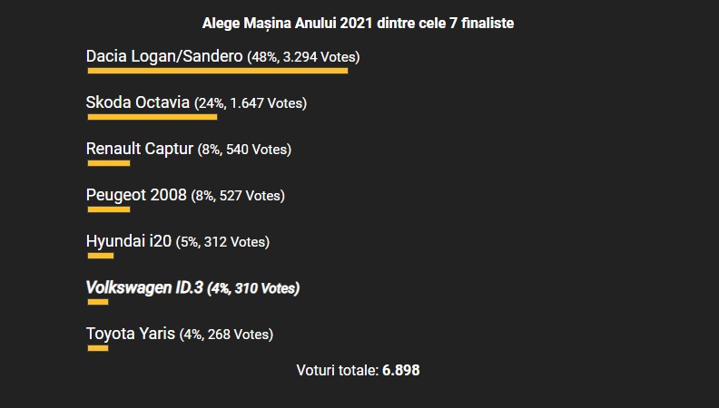 Ce rezultate au obtinut modelele candidate la Masina Anului 2021 in Romania